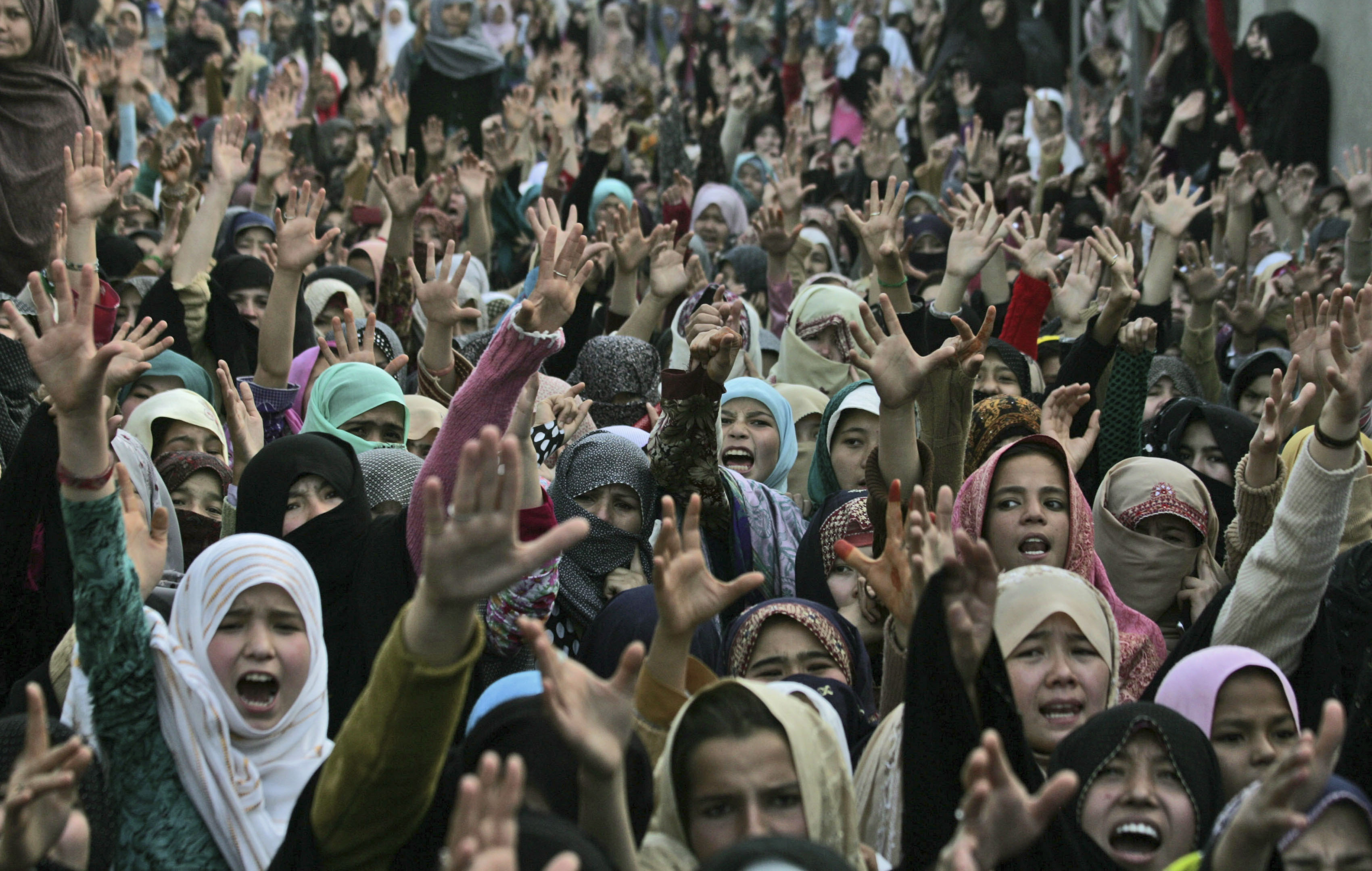 Pakistani Shiite Muslim women shout slogans during a protest to condemn February 16 2013 bombing in Quetta, Pakistan, Sunday, Feb. 17, 2013. Angry residents on Sunday demanded government protection from an onslaught of attacks against Shiite Muslims, a day after scores of people were killed in a massive bombing that a local official said was a sign that security agencies were too scared to do their jobs. (AP Photo/Arshad Butt)