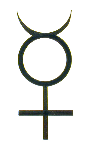Although Mercury is usually referred to in the masculine, *he* is in fact the primal hermaphrodite that takes on the gender of it’s sign and position. However, it’s Mercury’s nature to communicate both the Solar and Lunar Self. As the Magician, he channels this energy to the world of Matter, symbolized by the Cross.