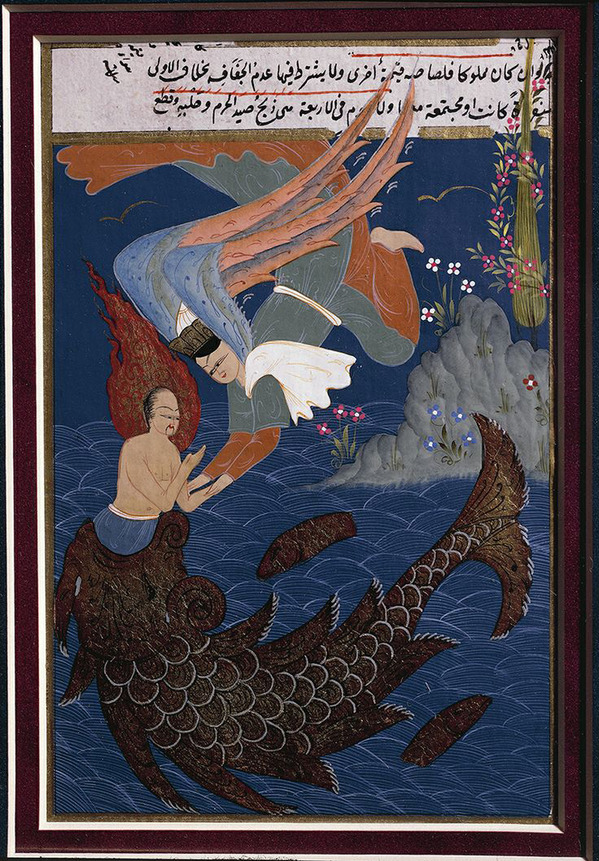 Turkey – 16th century manuscript – The whale ejecting Prophet Jonah. Ottoman miniature, end of 16th century