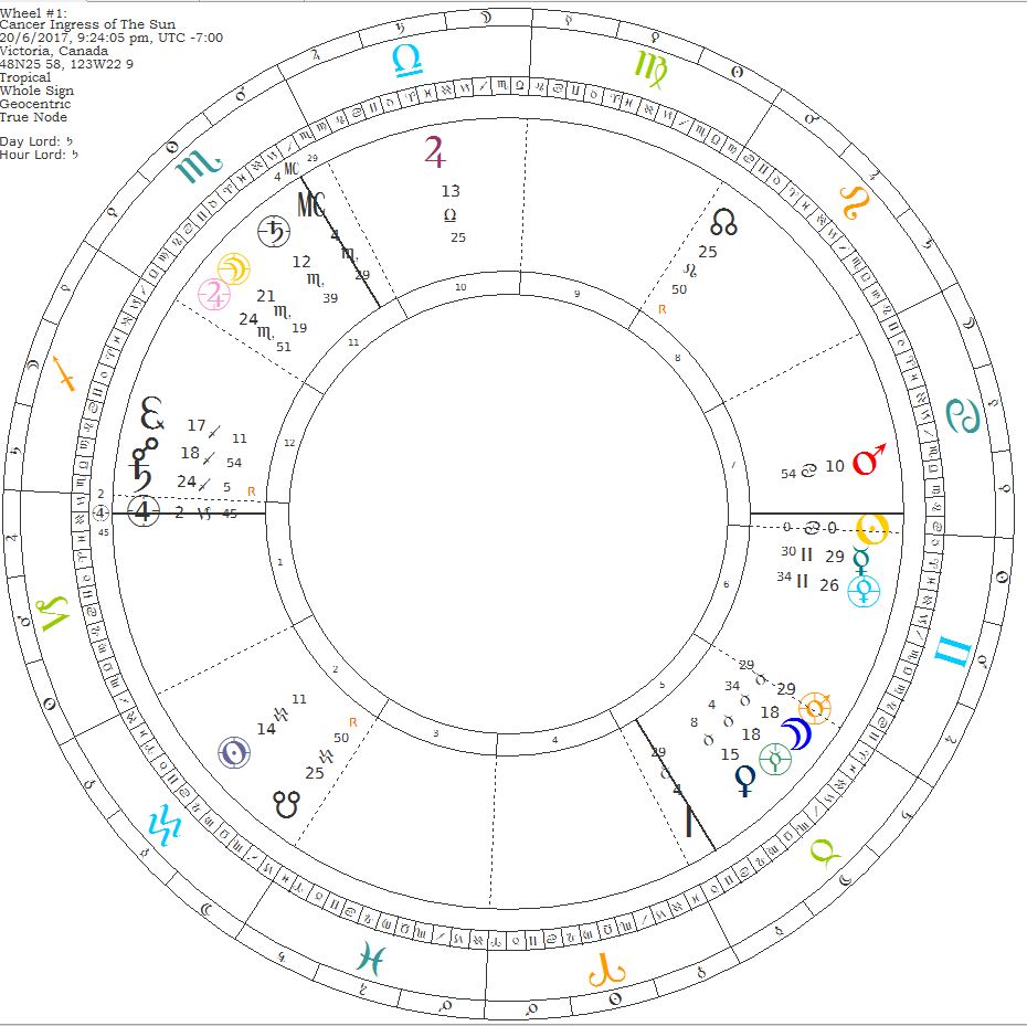 With all these things in mind, the chart for the exact moment of the Ingress of the Sun in Cancer takes on greater meaning.