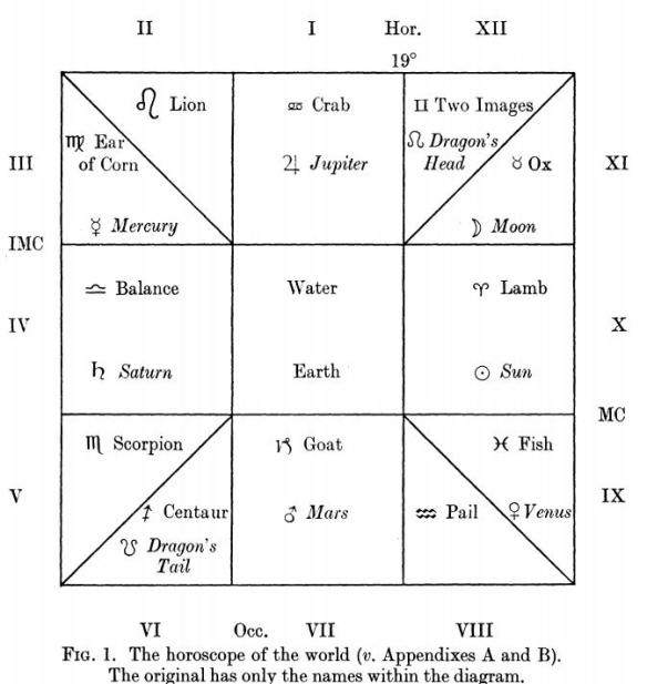 There is a particularly important significance to the two Equinoxes and Solstices that are usually ignored and the key is found in the Horoscope of the World. The rendition above is from the brilliant essay on “Zoroastrian Astrology in the Bundahisn by I. N. MacKenzie.