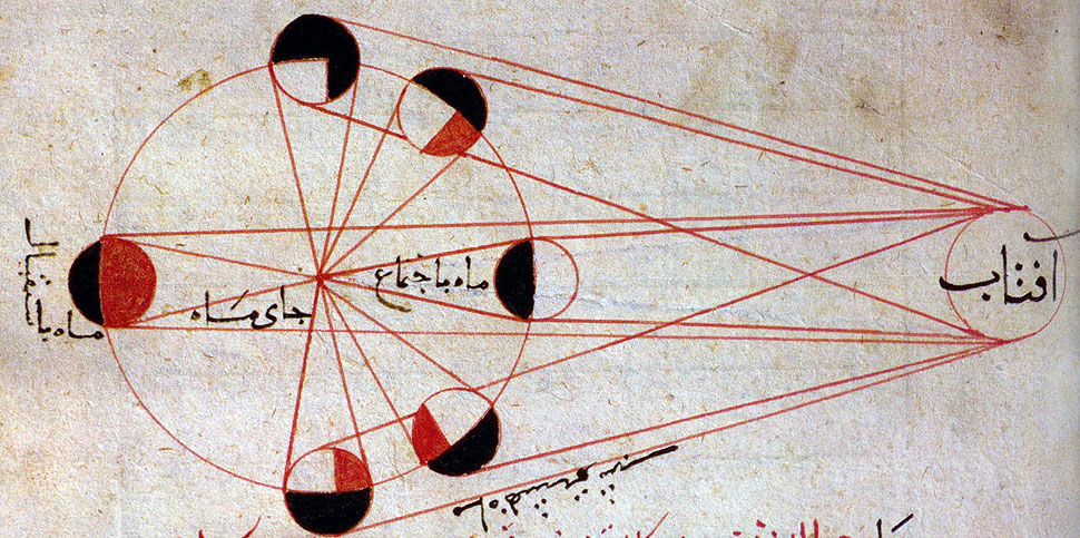 Eclipse Lunar Moon phases and eclipse illustrated by the great tenth-century Persian scholar Al-Biruni.