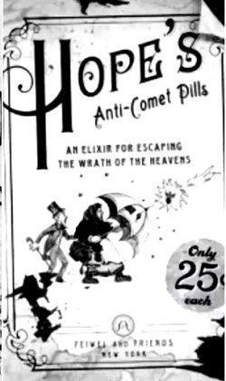 When Halley’s Comet returned in 191o, it brought forth fear of an apocalypse because Earth would pass through a small part of the tail. The spectroscopic studies of comet tails conducted by Sir William Huggins revealed that among the many organic molecules found in comets was lethal cyanide gas. Speculation became hysteria in some cases, convinced that the humanity stood a very good chance of being asphyxiated by cyanide molecules. Newspapers fueled the panic, people sealed off their chimneys and doorways. There were many suicides, strange new remedies were offered for sale and oxygen sold for high prices.