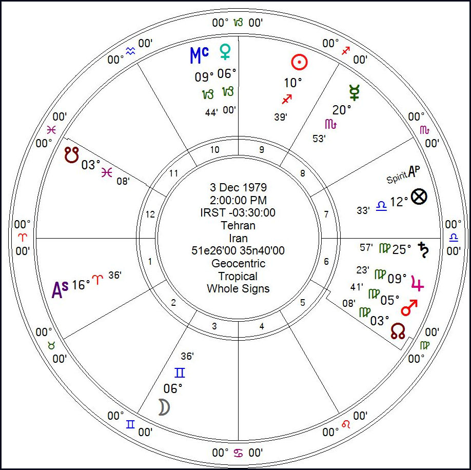 I recently posted a brief article on the Chart of the Year for Tehran. You may wish to consult that in concert with charts in this article.