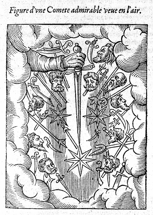 Skywatching used to be a far more common practise, not least because the skies were clearly visible and without the modern levels of light pollution. In many cases, such as the examples given here from Whether we look to the past or the future we see signs that assist in prediction and make sense of extraordinary occurrences. Dramatic celestial events, even when feared as apocalyptic nevertheless elicited a sense of profound awe. The images of comets are magnificent, even if considered portents of doom. Some are from Biblical accounts imagined in reference to life in the 16th Century.