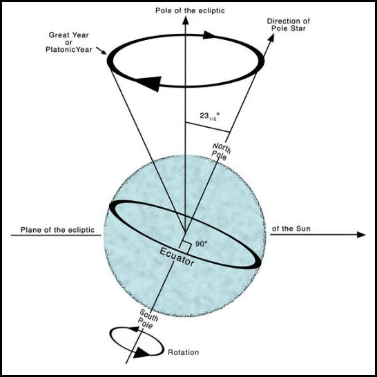 The term has two main meanings. In scientific astronomy, it is defined as one complete cycle of the equinoxes. This translates to a period of about 25,800 years”. A more precise figure of 25,772 years.] The position of the Earth’s axis in the northern night sky currently almost aligns with the star Polaris,