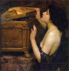 Specifically, when she opens the box, all manner of strife and torment is leashed upon the world. In the words of K. Kris Hirst, ” Pandora is a trick gift, a punishment for the good of Promethean fire, she is, in fact, Zeus’s price of fire.” But metaphorically, all that plagues humanity, including plagues themselves, swarms of locust in numbers hitherto unseen and destroying subsistence crops over an area never before seen, combine to give the impression of an apocalypse.