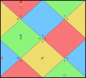 Donc, en fait, l’Univers est né du désir. Les maisons astrologiques sont 2, 5 et 9. Cela semblera quelque peu étranger à l’astrologue occidental, mais c’est parce que nous avons tendance à vouloir séparer le plaisir de la sagesse. Les plaisirs de Kama incluent les plaisirs de l’esprit supérieur. Si nos plaisirs nous induisent en erreur, alors le Dharma est là pour rétablir l’équilibre.