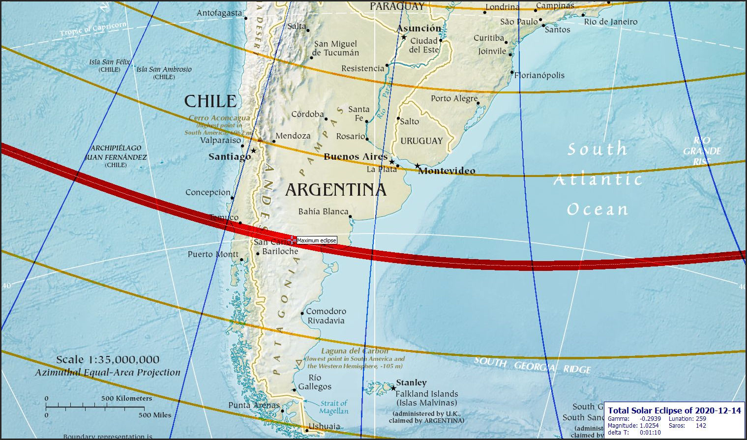 Three and half years of influence is indeed considerable and we look to the chart for the maximum eclipse in San Carlos de Barchloche, Argentina.