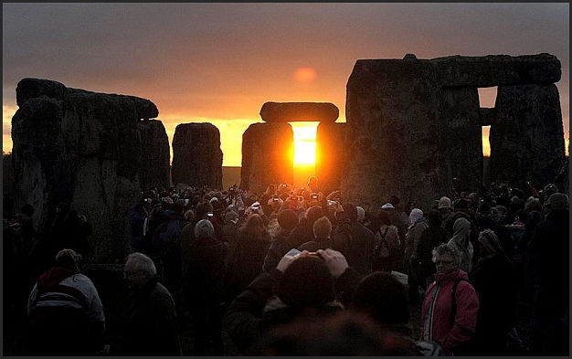 The Winter Solstice was celebrated in Britain well before the arrival of Christianity and continues to this day. The Druids cut mistletoe. which grows on the sacred oak trees and gave it as a blessing. The mistletoe symbolized life in the dark winter months.