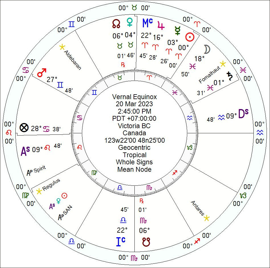 Screenshot – 2023-03-21 , 11_08_02 AM Published March 21, 2023 at 946 × 941 in ARIES INGRESS OF THE SUN – 2023 Vernal Equinox – 20 Mar 2023 AD GC. 2:45:00 PM. Victoria, British Columbia PDT