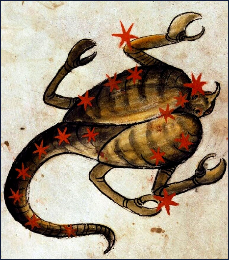 “Shining at the hinge of the year by the blazing turning-point which when recalled the Sun rounds in his course on high, the Crab occupies a joint of heaven and bends back the length of day. Of a grasping spirit and unwilling to give itself in service the Crab distributes many kinds of gain, and skill in making profits; he enables a man to carry his investment of foreign merchandise from city to city and, with an eye on steep rises in the price of corn, to risk his money upon sea-winds; to sell the world’s produce to the world, to establish commercial ties between so many unknown lands, to search out under foreign skies fresh sources of gain, and from the high price of his goods to amass sudden wealth. With heaven’s favor he also sells seasons of idleness at rates of interest to his liking, wishing the swift passage of time to add to the principal. His is a shrewd nature, and he is ready to fight for his profits.” [Astronomica, Manilius, 1st century AD, book 4, p.235.]