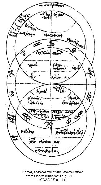 1. This text was published by F. Cumont in the first tome of the fifth volume of Catalogus Codicum Astrologorum Graecorum (CCAG), pag. 194-211., it was included in Rhetorius’ works (Rhet.) in the VI century and it has been taken and used again by Teophilus of Edessa (CCAG V/1 pp. 212-217). Between the end of the VIII century and the beginning of the IX century it appeared in a drawing up which includes some glosses (EP). At a certain time, the list of these thirty bright stars became formal in the astrological judgements: in Vaticanus graecus 208, fo. 130v, the following explanatory note has been added to the list of these stars: “These are thirty bright stars which we use in the prediction of the events according to the rules of great Ptolemy…” (D. Pingree, The Astrological School of John Abramius, Dumbarton Oaks Papers, 1971, pag. 209). Another text was written during Latin Middle Ages. It was an extremely similar text(VL), which was the translation of the original Arabic text, wherein the bright stars were named beibenia and they entered the medieval, astrological lexicon with this term. Jerome Vitali in his Lexicon mathematicum, says that beibenia are the main stars of the starry images, in particular their hearts and the stars of the first magnitude. (Lexicon mathematicum, astronomicum, geometricum, Parisiis 1668,pag. 84. Cfr. the commentary on the pseudo-Ptolemaic centiloquium, ascribed to ‘Al” ibn Ridwän, but this work was written by ibn al-Däya, v. 27: “Beibenie, id est fixe qui sunt corda fixarum, sicut cor tauris et cor leonis et cor scorpionis, sc. ille que sunt in orbe signorum ex prima magnitudine”). Al-Bîrûnî says that this term derives from neo-Persian biyâbânî, that is, the stars of the desert, the name that Persians would have given to some bright stars, since whether you could find the straight and narrow path in the desert or not depended on them (Al-Bîrûnî, The Book of Instruction in the Elements of the Art of Astrology, ed. R. Wright, London 1934, pag. 46, ¤ 125). Unfortunately, this suggestive etymology is wrong and we have to say that this name refers to and derives from middle Persian (pahlavi) a-wiyâbân-îg, term by which lack of movement, the fact that something is fixed, is designated (Cfr. W.B. Henning, An Astronomical Chapter of the Bundahishn, Journal of the Royal Asiatic Society, 1942, p. 229; P. Kunitzsch, Beibenian stars – al-kawâkib al-biyâbânîya. Ein Nachtrag, Zeitschrift der Deutschen Morgenländischen Gesellschaft, 1981 (131, 2), pag. 263-267).