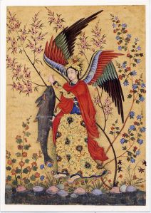 Isrāfīl.-” Angel with Fish.” Mughal 1590 – Hossein Naqqash