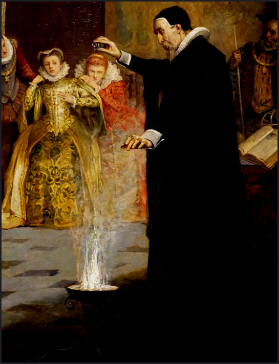 John Dee Performing an Experiment before Elizabeth I – Henry Gillard Glindoni (1852-1913), -Public Domain via Wikimedia Commons