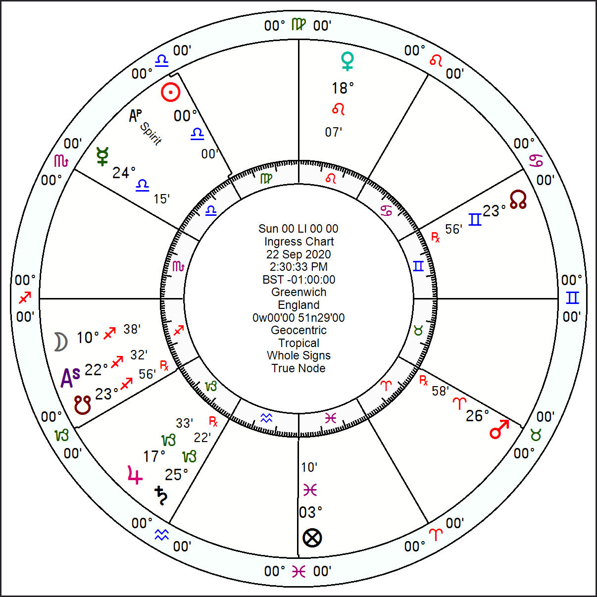 I rarely post on ingress charts other than the four cardinal Ingresses – the solstice and equinox events. Bot this is no ordinary year, by anyone’s standards and I’m there for watching the unfolding patterns that precede the Great Conjunction of Saturn and Jupiter in Aquarius, an event that will have repercussions not only until the next Great Conjunction but also for the next two hundred years. The shift is from the Earth to the Air Triplicity. I have elaborated on this elsewhere.