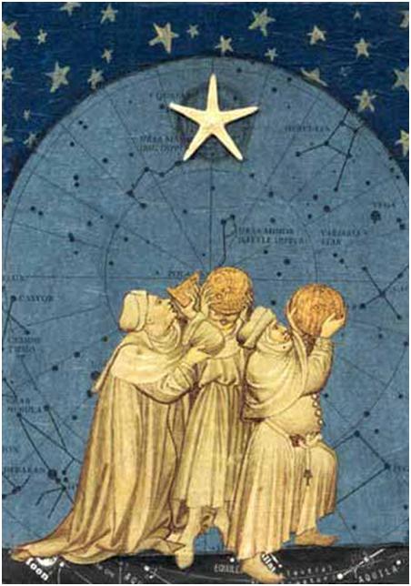 The origin of the word Magi is Persian. They are astrologers and sages. not kings. The star in the East was almost certainly Sirius. The coincidence with the Winter Solstice is no accident. What we have is a Solar festival, but also a mystical vision. The Epiphany and the Procession of the Magi are not just something that happened more than two thousand years ago. If that were the case, the story would have little relevance. They were perhaps not so much following a star as acknowledging and venerating a great light that drew them to an epiphany. We can associate it of course with the Winter Solstice, the longest night followed by the waxing of the light. The Yule log, the lighting of candles and merry-making seem to fit seamlessly into the story.
