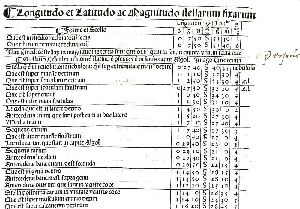 A page from the first printed edition of Ptolemy’s Almagest. Venice 1515. The edition is based on the Latin translation of Gerard of Cremona (c.1114–1187) Toledo, Spain 1175.. See Alan Ridpath’s Page http://www.ianridpath.com/startales/startales1b.htm#ptolemy for detailed discussion.